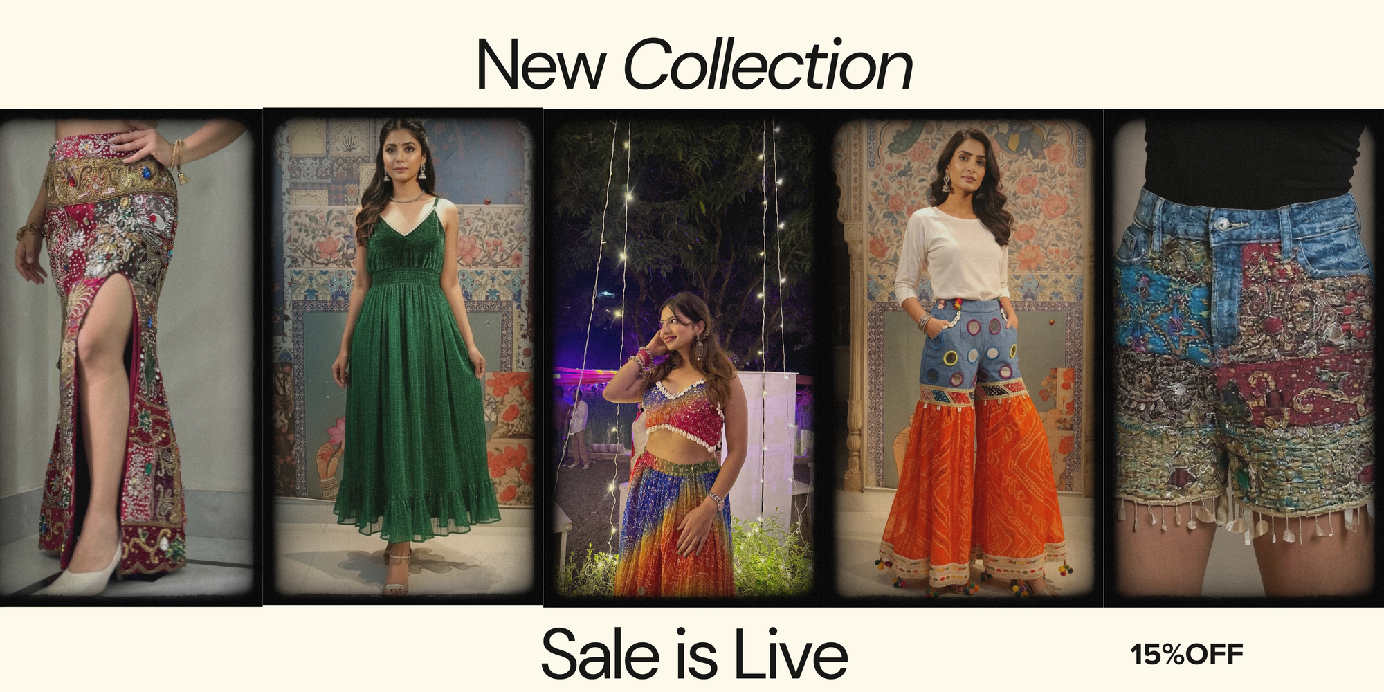 Bandhani Fusion Palazzo Pants with Mirror Work & Pompom Hand Embroidery