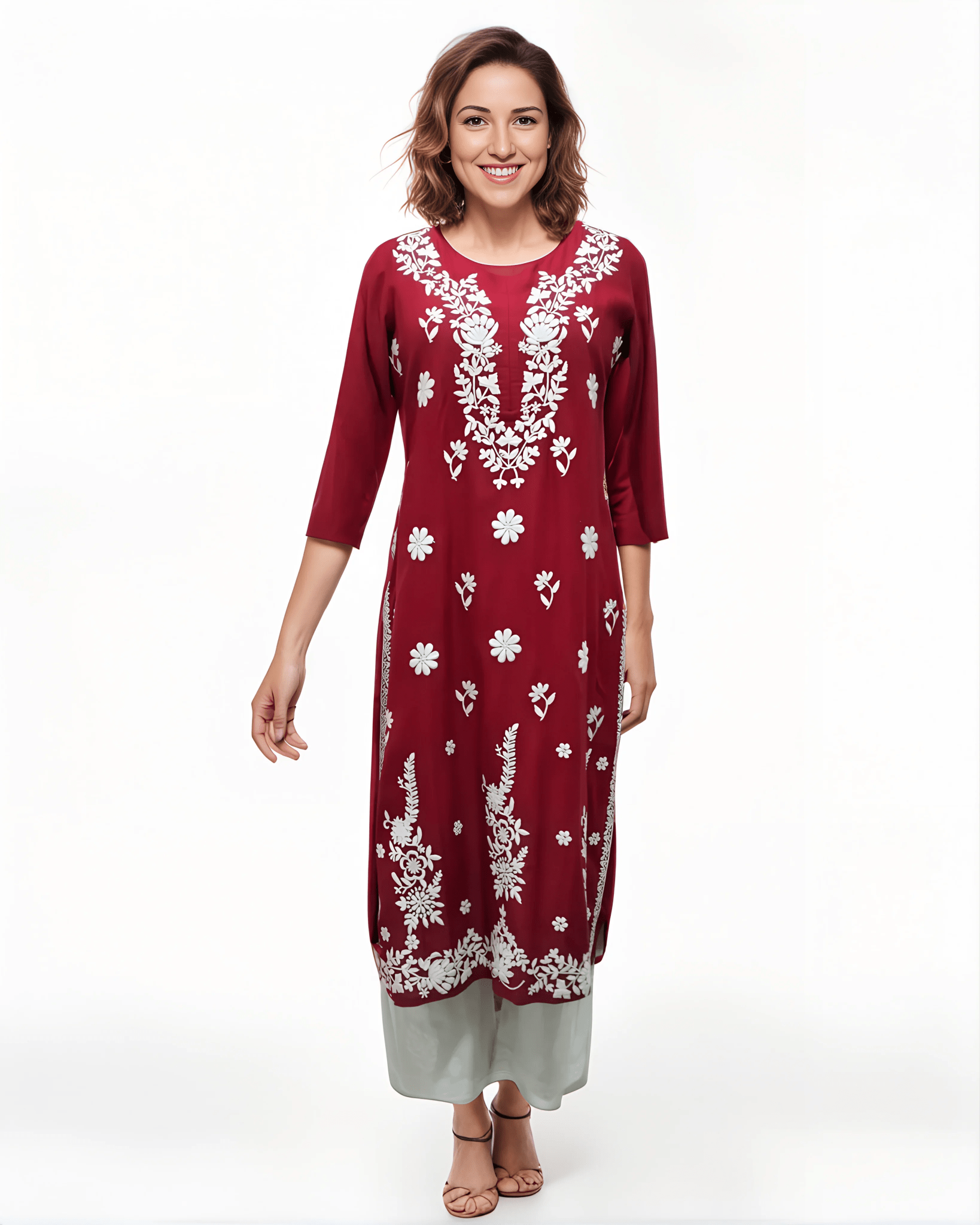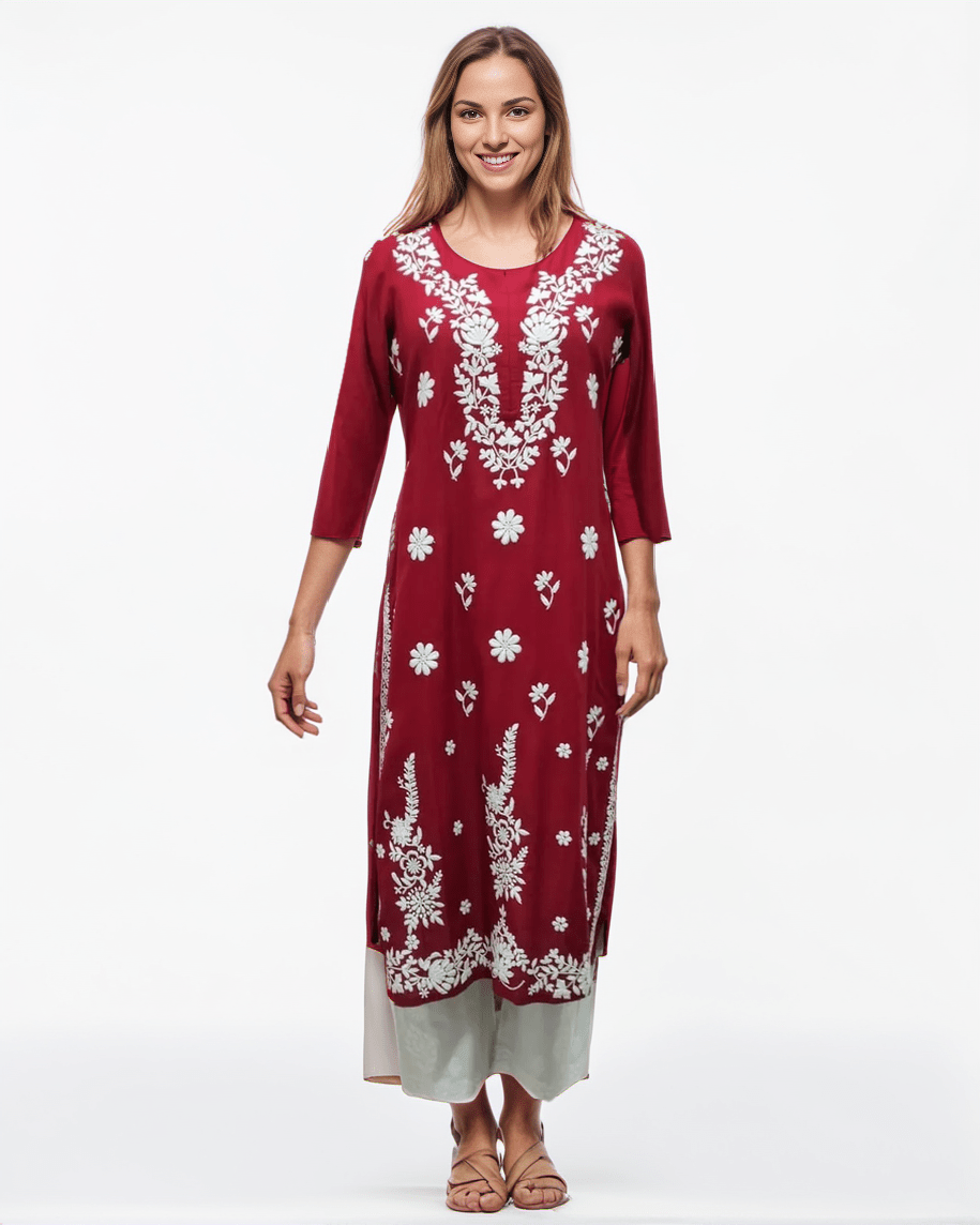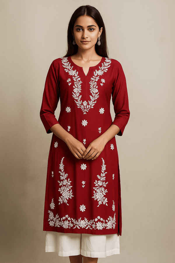 Ruhani Ruby – Elegant Maroon Kurta with White Threadwork