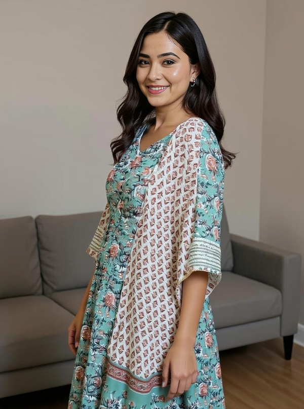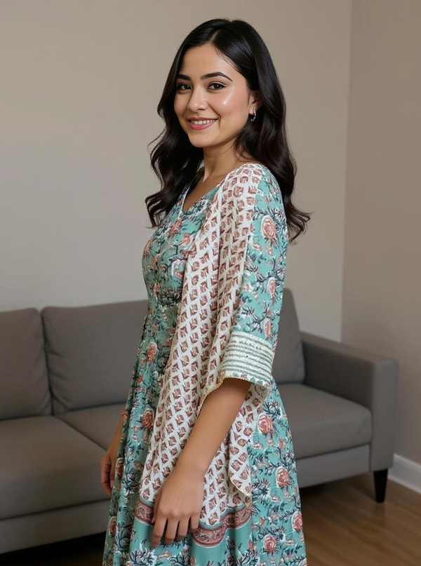 Bloom with elegance in our Gulnaar Floral Anarkali Set, designed to bring out your natural grace. This beautifully flared Anarkali kurta features delicate floral prints that add freshness and charm to your ethnic wardrobe. Crafted with breathable, soft fabric, it offers comfort with a touch of royalty – perfect for festive gatherings, daytime outings, or even casual elegance.