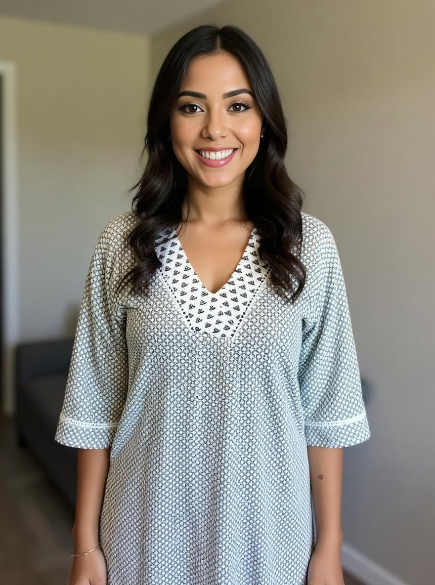 Step into effortless boho charm with our Indigo Echo Maxi Dress. Designed with an all-over geometric print and contrast neckline detailing, this relaxed-fit dress blends laid-back style with a touch of folk-inspired flair.