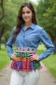 Elevate your style with this stunning handcrafted Phulkari embroidered jacket top, featuring intricate mirror work, bold multicolor thread patterns, and playful tassel accents. Perfect for pairing with shorts, denim, or traditional bottoms, this versatile piece brings a burst of ethnic charm to any outfit. Made from soft, breathable fabric, it’s ideal for festive occasions, casual gatherings, or vacation wear.