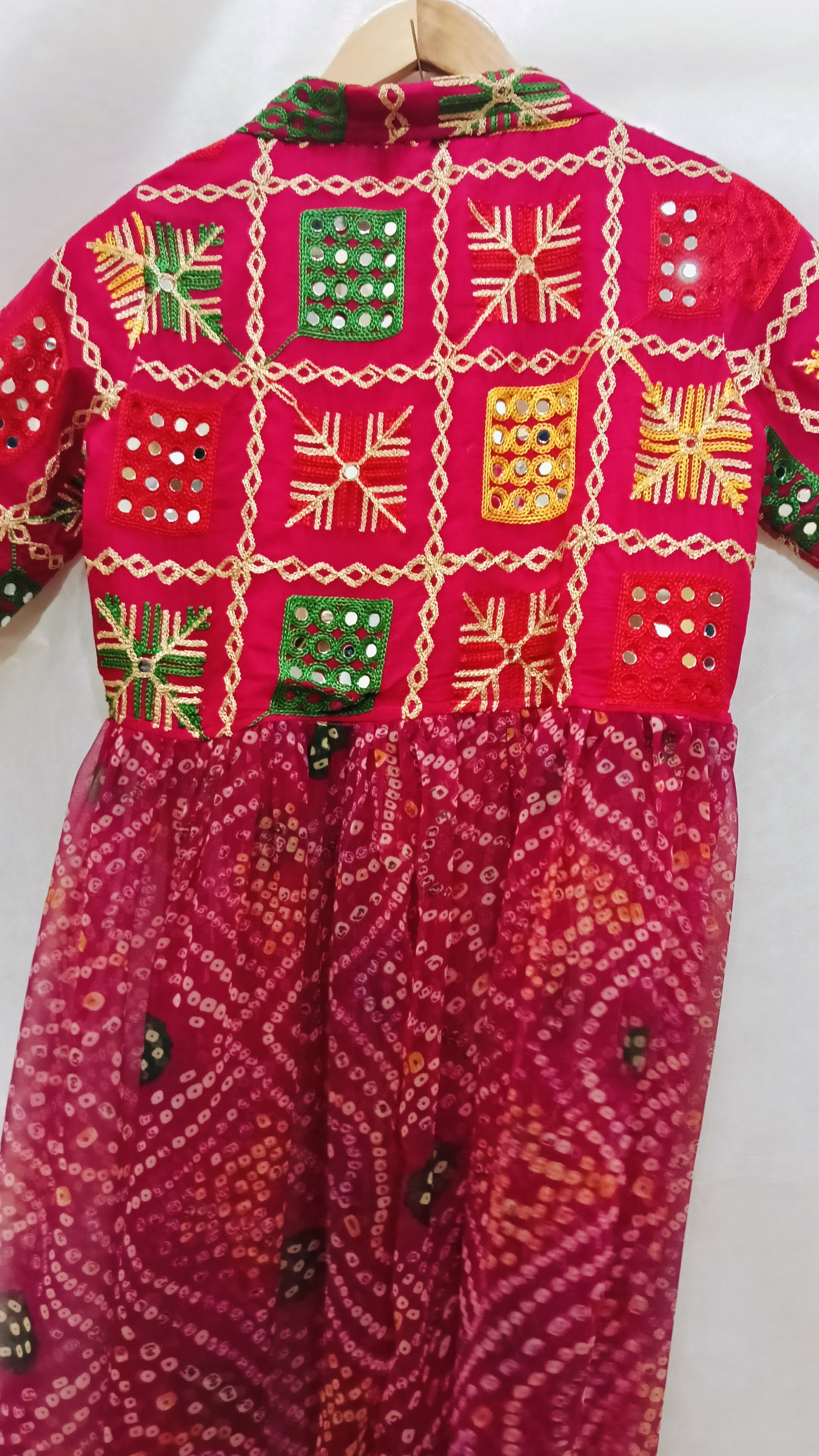 Detailed mirror work & phulkari patch accents