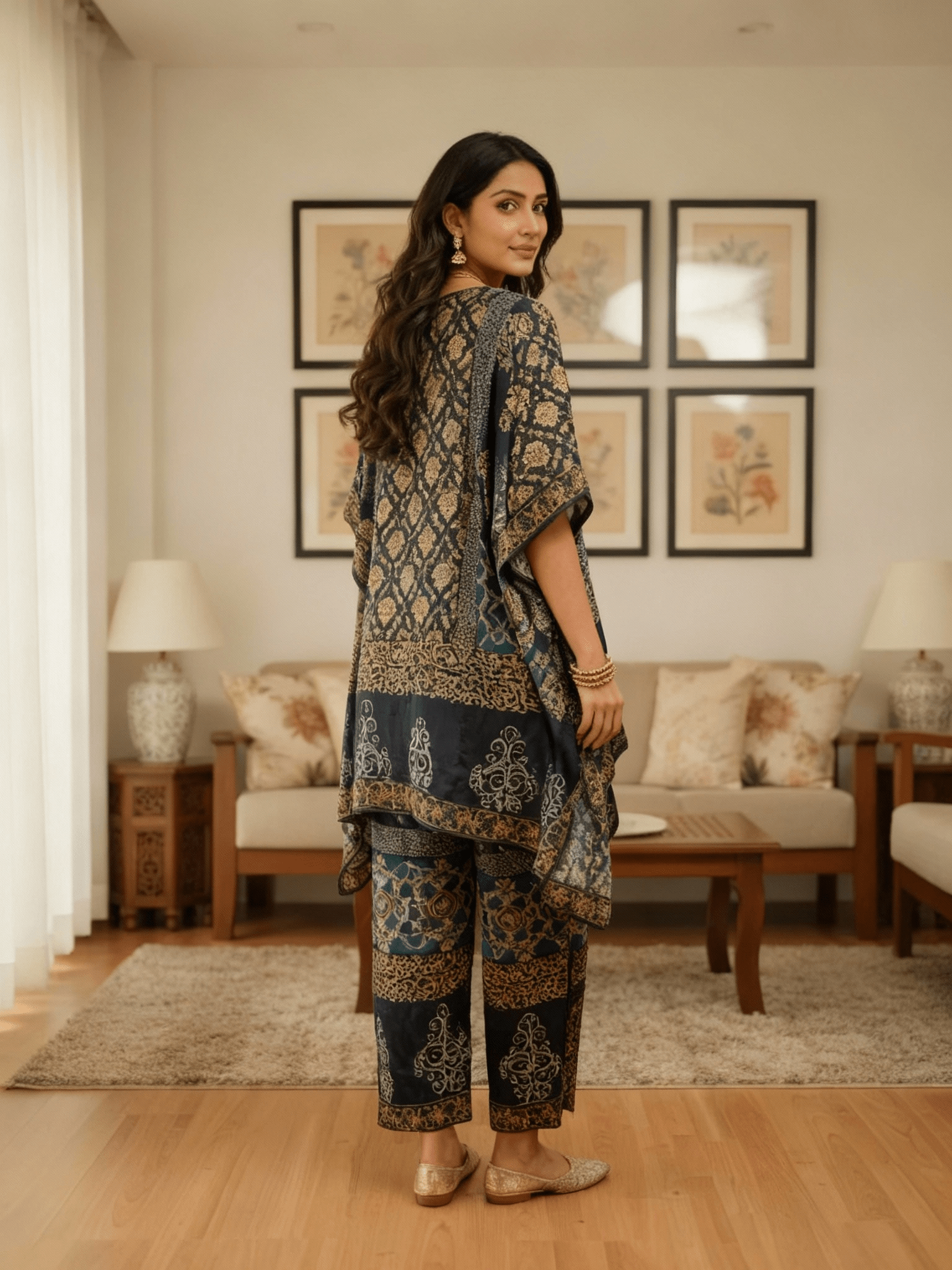 Navy Blue Kaftan Top & Pant Co-ord Set – Elegant Indo-Western Fusion Wear
