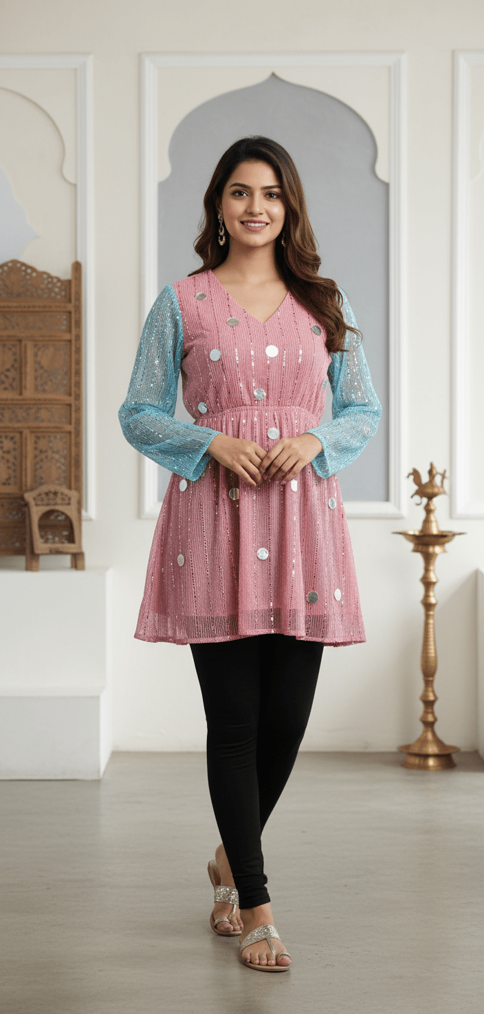 Two-Tone Shimmer Tunic with Sequin Detailing – Festive Fusion Wear